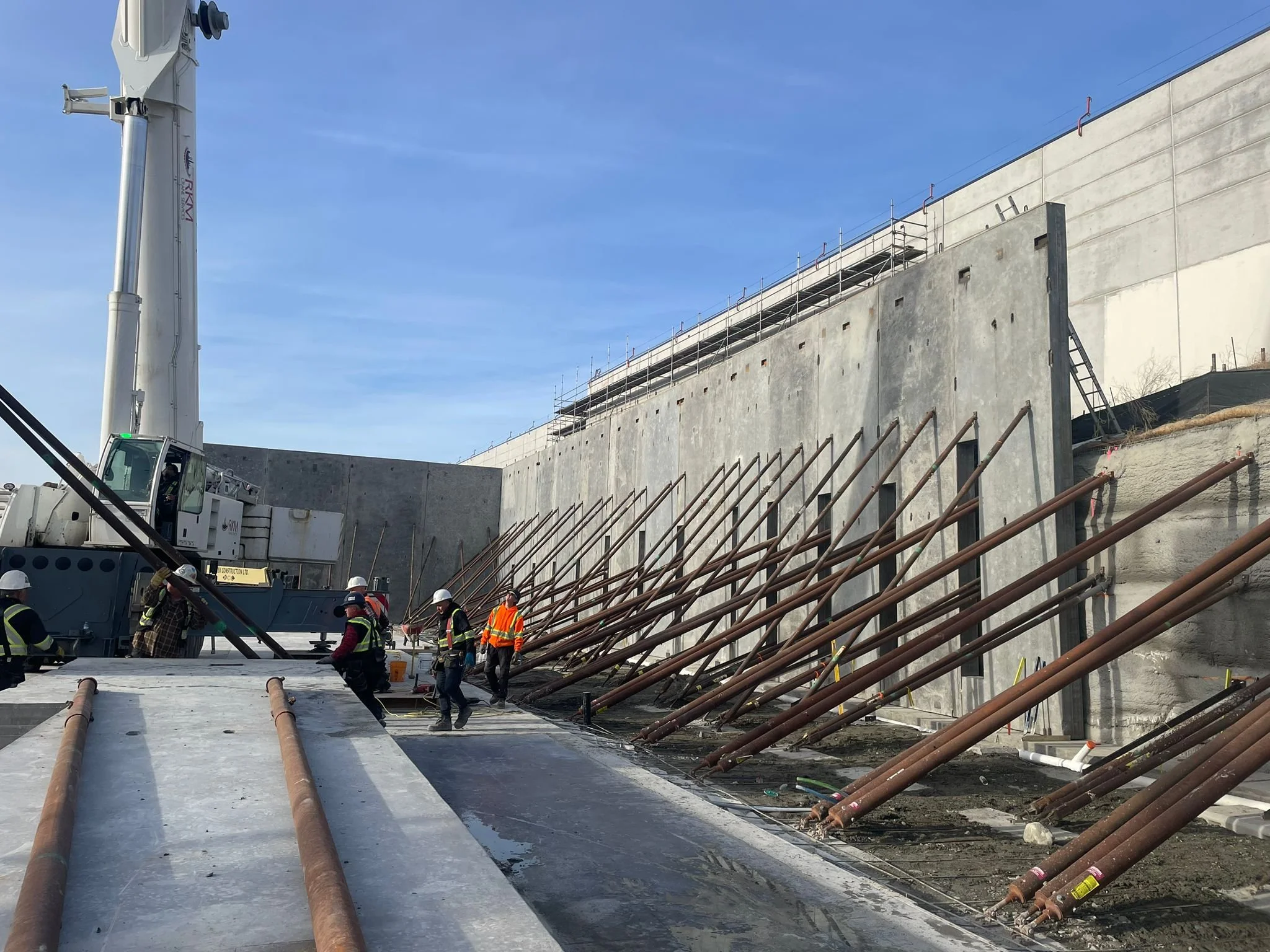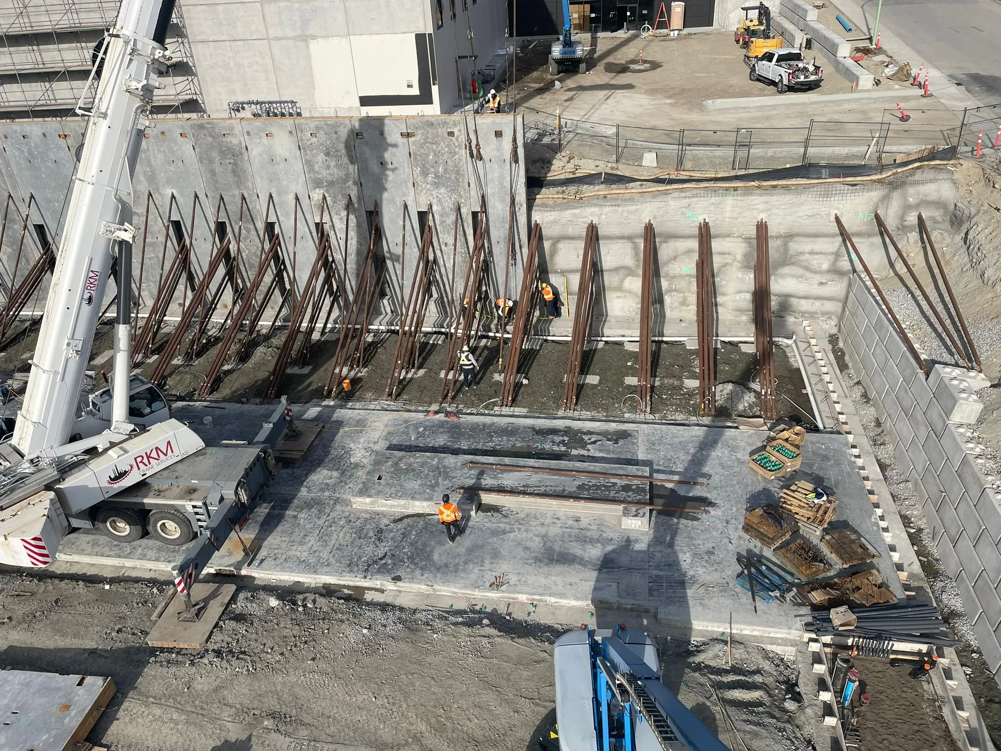 The wall had to be designed to withstand lateral earth pressures and seismic forces, while also incorporating architectural features to blend with the modern aesthetic of the building. Our team of structural engineers worked closely with the geotechnical engineers and construction crews to develop an innovative solution using a combination of shotcrete and lateral brace supports.